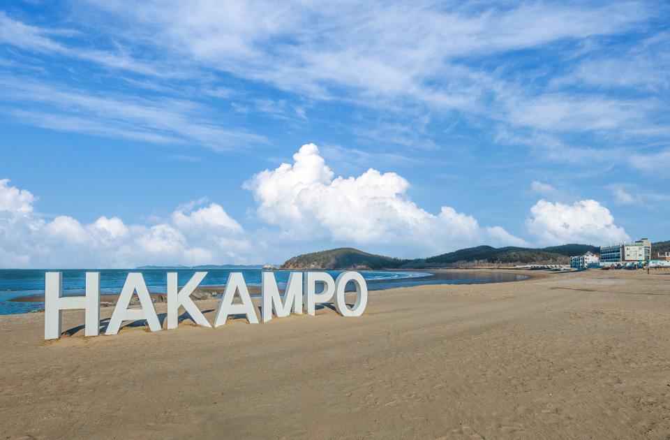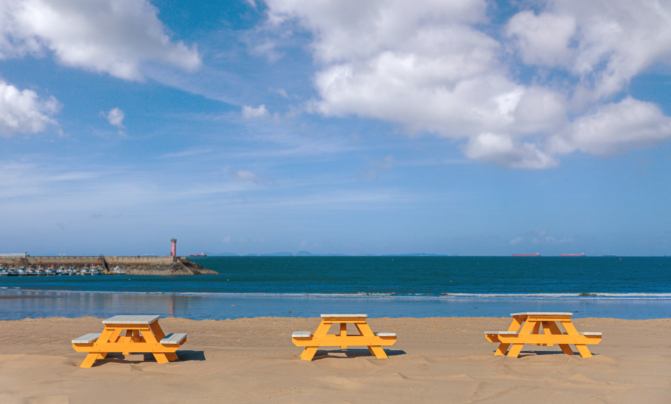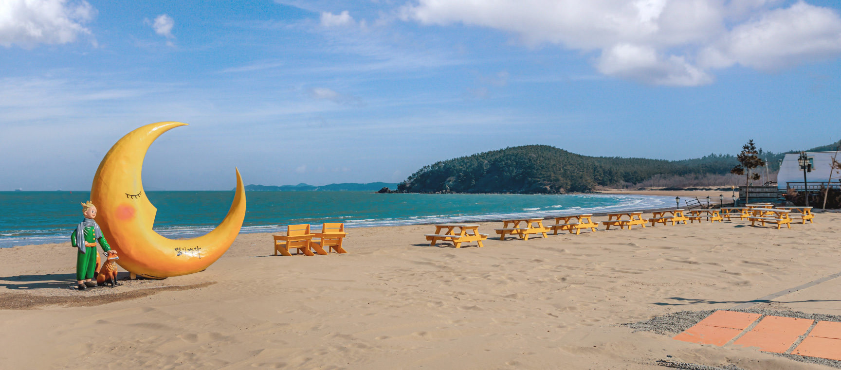 태안 학암포 해변의 아름다운 바다를 배경으로