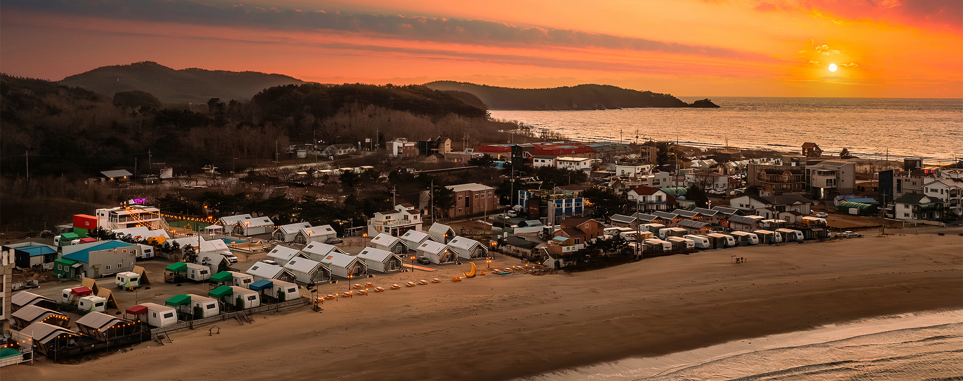 안양 (1시간40분) : 서해안고속도로 > 서산 I.C > 서산 > 태안 > 학암포해수욕장 > 별빛바다 글램핑 펜션