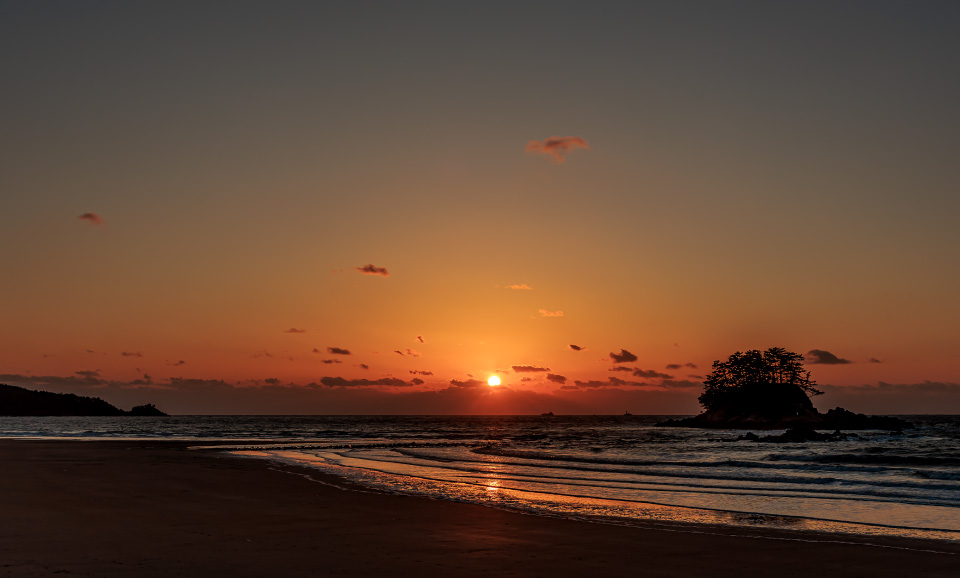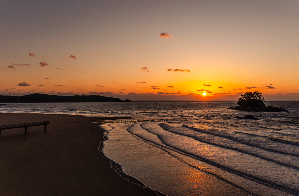 태안 학암포 해변의 아름다운 바다를 배경으로