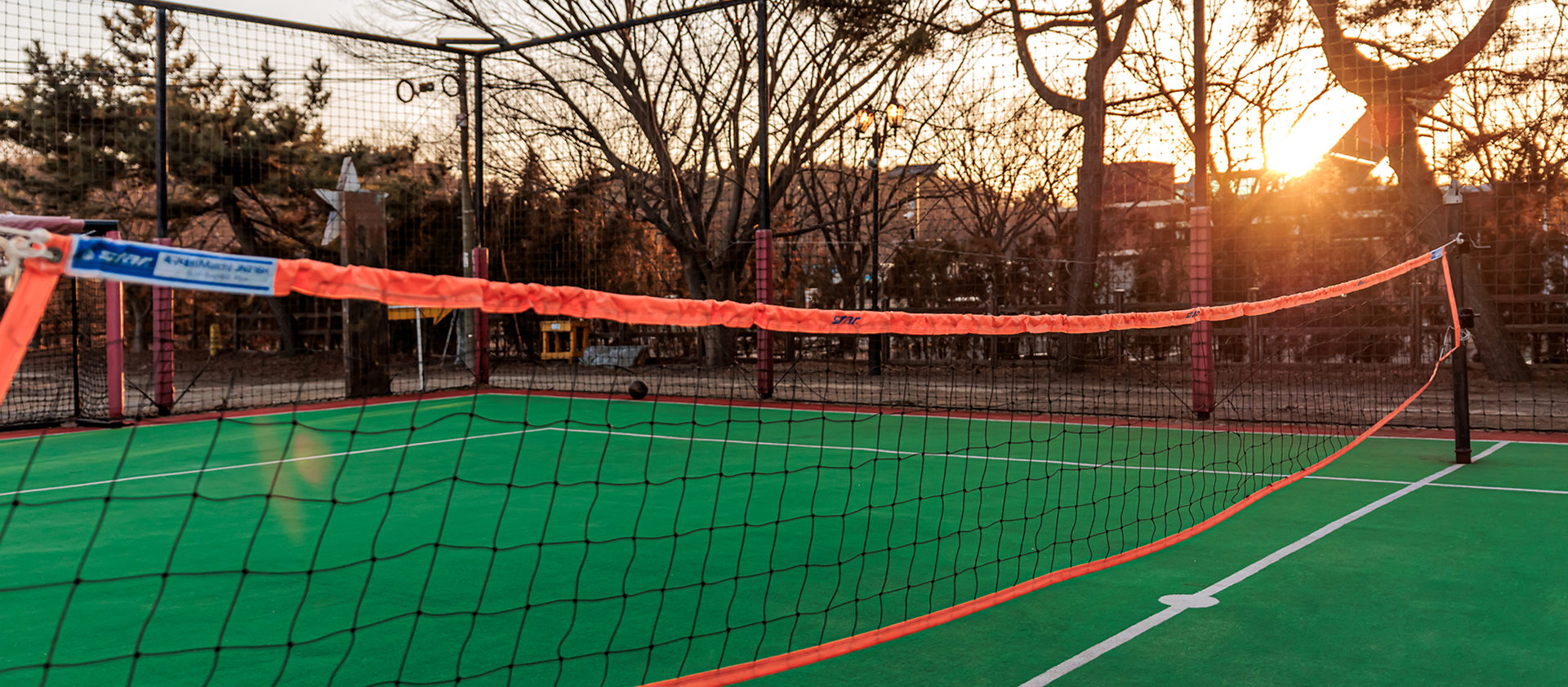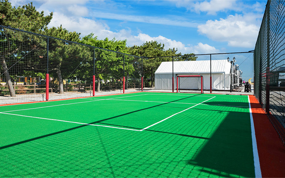 인조잔디에 마사토를 곱게 뿌려놓은 초록 운동장에서 시원한 바닷바람을 맞으며