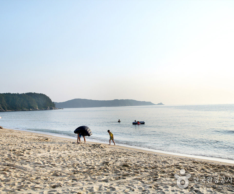 고운 모래로 백사장이 좋고, 경사가 완만하고 수심이 얕아 가족 단위의 해수욕장으로 사랑받고 있습니다.